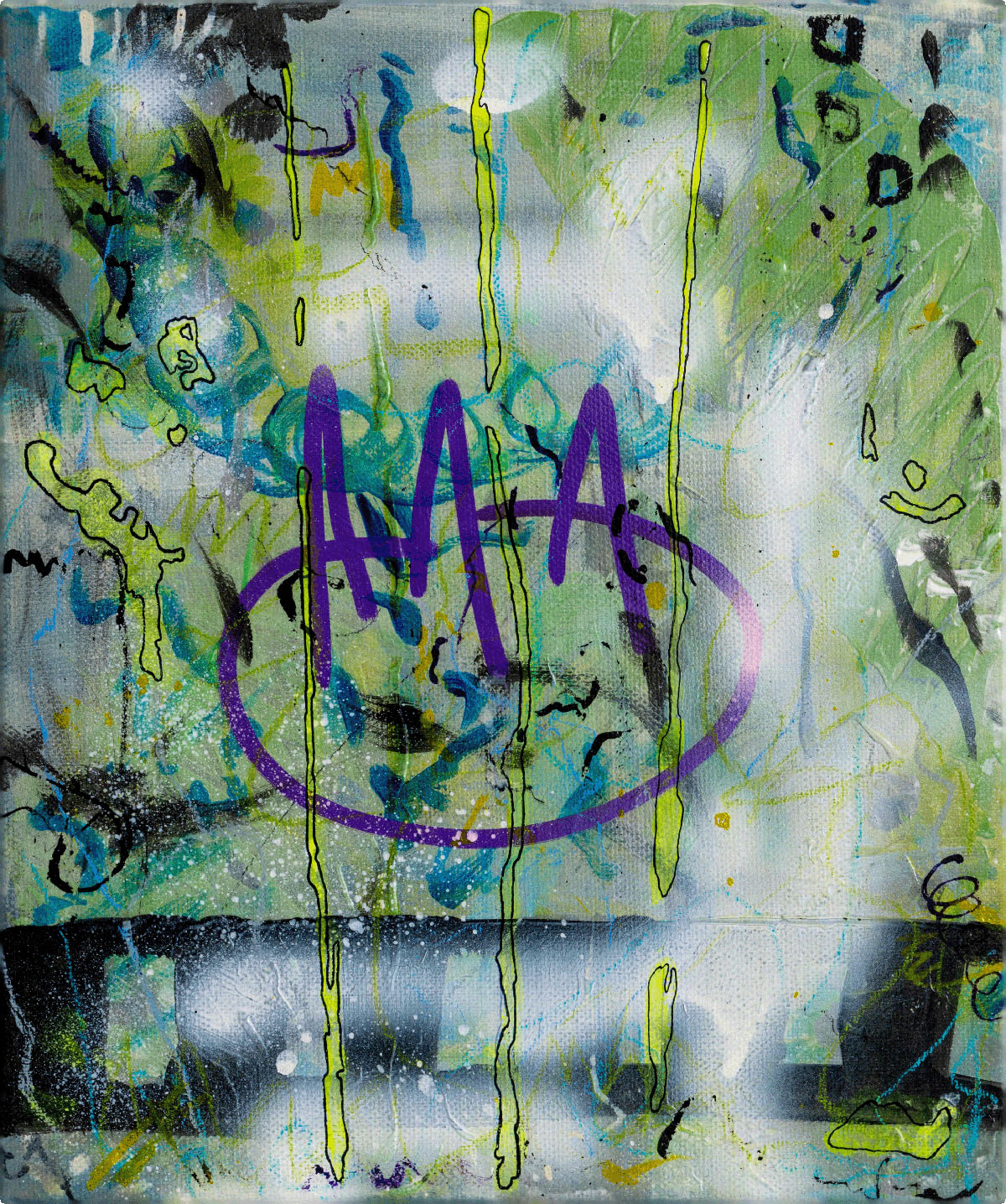 2021, series of painting, 25x35 cm, acrylic, acrylic markers, spray, acrylic chalk, ink on canvas